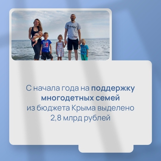 Общий объём финансирования мер поддержки крымских многодетных семей составил 2,8 млрд рублей.