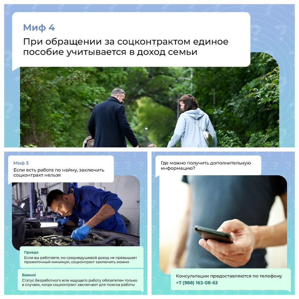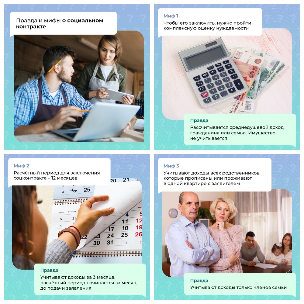 👉 Сегодня развеиваем 5 мифов о соцконтракте. Листайте карточки и делитесь полезной информацией с друзьями.