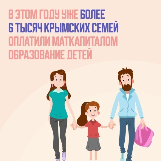Она помогает решать важные вопросы, в том числе улучшить качество жизни семьи и развить возможности для детей. Чаще всего средства маткапитала расходуют на образование детей. Только в этом году распорядились маткапиталом на учёбу более 6 тысяч крымских семей.