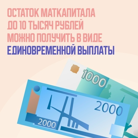Кроме того, семьи смогут обналичить остаток сертификата, если он не превышает 10 тысяч рублей.